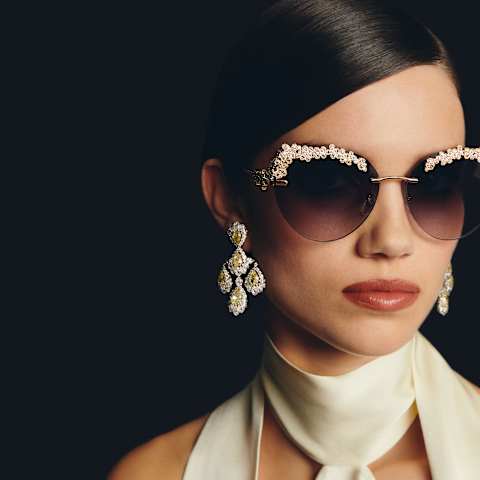 太阳镜的设计风格以品牌的珠宝和时计杰作为灵感源泉,通过全新视角演绎品牌最为经典的标志性元素。ICE CUBE、IMPERIALE和HAPPY DIAMONDS太阳镜系列淋漓展现现代优雅女性的自然魅力。金属眼镜镶饰珍贵细节。高级珠宝和RED CARPET系列的华丽风情通过一款款珠宝般的高雅女士太阳镜得到忠实再现,适合红毯等各类重要场合。
